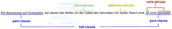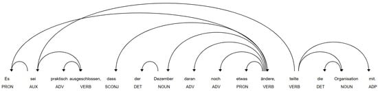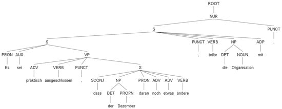 https://stanfordnlp.github.io/CoreNLP/index.html (accessed on 12 December 2024)), along with the German module version 4.5.7. Within this package, we exclusively use the German constituent parser to parse all ten example sentences.