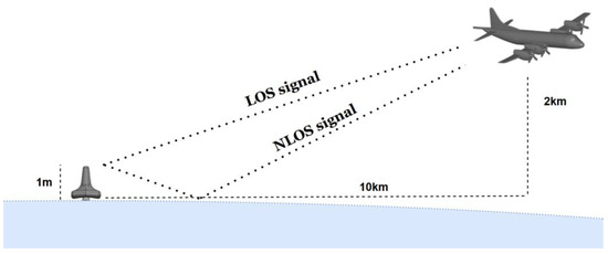 To accurately imitate realistic communication environments within the communication system between sonobuoys and MPA, air channel modeling that reflects actual environmental conditions is essential. Extensive research has been conducted on air channel modeling [22,23,24], with the free-space path loss and two-ray models being prominent examples. These models offer the advantage of incorporating signal reflections from the ground surface, thereby capturing the effects of signal propagation more effectively.