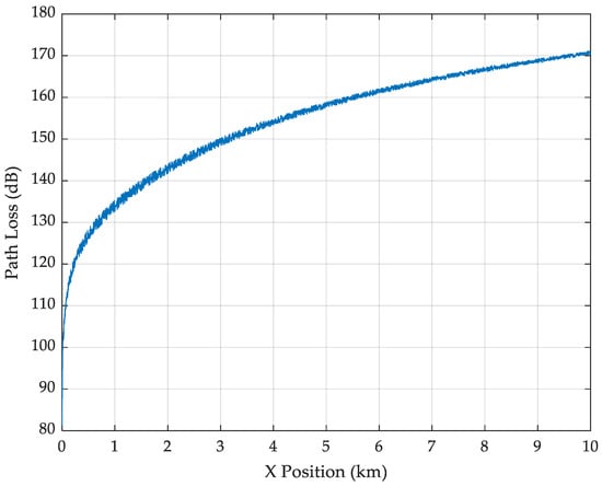 Recent studies have extended the traditional two-ray model to develop the Curved-Earth Two-Ray Model [23,24], which accounts for the curvature of the earth and facilitates precise channel modeling in both terrestrial and aerial communication environments. The Curved-Earth Two-Ray Model was primarily developed to analyze air–ground communications in unmanned aerial systems (UAS). This model assesses the attenuation characteristics of the communication channel by including both the direct path and the ground-reflected path, effectively reflecting path differences due to the curvature of the earth and the conditions of ground reflections. Research in [23,24] has demonstrated that this model effectively simulates complex phenomena, such as reflection effects caused by path differences over land and water surfaces, thereby providing a more accurate representation of signal behavior in real-world scenarios.