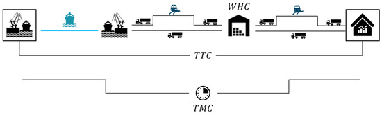 Scheme of contributions to TLC: TTC, WHC, and TMC. Note that any transport mode can be used, although only train and truck are shown. Source: Own elaboration.