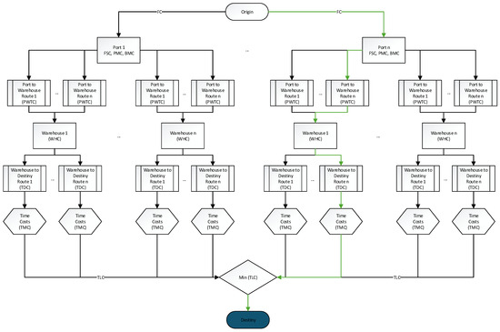 The concept of Total Transport Cost (TTC) in international logistics has evolved significantly since its initial formulation by Zhang et al. [24]. In the context of FOB (Free On Board) Incoterms, TTC encompasses all transport-related expenses from the origin port to the final destination point. This comprehensive cost metric includes ocean freight, port management, customs procedures, documentation, and inland transportation, reflecting the complex nature of global supply chains [1].
