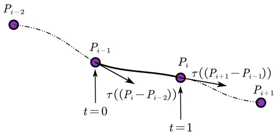 Therefore, it is necessary to smooth the generated path to maintain the original path shape more accurately. This paper adopts the Catmull–Rom spline curve to smooth the path, which can effectively improve path continuity and trackability.Specifically as shown in Figure 1.