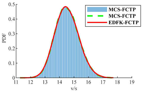 Comparing the PDFs in Figure 4, it can be seen that the FCTP probability density function obtained by EDFK-FCTP is very close to MCS-FCTP. Comparing the failure probability as shown in Figure 5, the results of both EDFK-FCTP and ASVR-FCTP are better, but the EDFK-FCTP is closer to the results of MCS-FCTP. When failure probability is greater than , the results of three methods almost coincide, indicating that EDFK-FCTP can accurately estimate trend of time-variant failure probability over the product life cycle. To further reflect the accuracy of EDFK-FCTP, the relative error with MCS-FCTP is calculated by Equation (37):