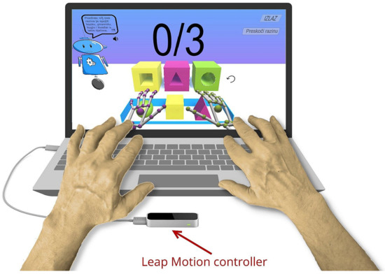 The development of this tool is based on concepts and guidelines previously defined and implemented in collaboration with a student of the Applied/Business Computing at the University of Dubrovnik as part of her master’s thesis [105]. This game was developed using the cross-platform game development framework Unity, version 2020.2.6f1. A 1st generation Leap Motion device manufactured by Ultraleap, San Francisco, CA, United States was chosen as an input device to implement the 3D user interactions.