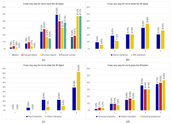 In the second part of the research, participants completed a survey created in Google Forms. This part of the research was not time-limited. The survey statements evaluate the participants’ subjective experience of interacting with 3D objects and focus on the experience of ease, precision, intuitiveness, and frustration when handling the objects.