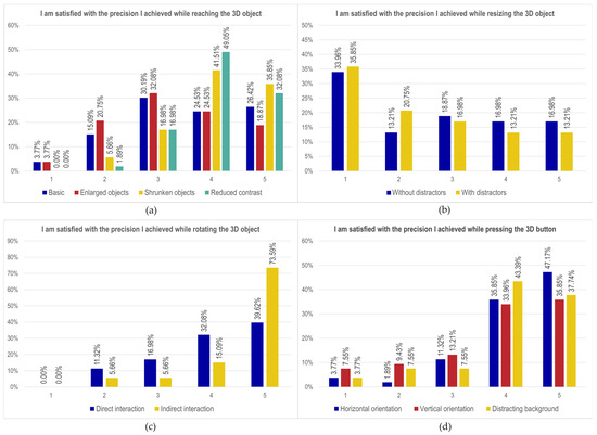 The quantitative data provide a basis for analyzing the effectiveness and accessibility during the interaction with the research tool, while the qualitative data provide information about the users’ satisfaction with the achieved precision, the ease of interaction, and the general subjective impressions during the interaction (e.g., the users’ frustration).