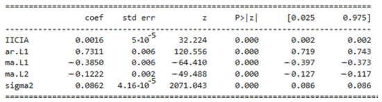 where is the value of the time series at time t, is the exogenous variable at time t, is the coefficient that measures the impact of the exogenous variable, are autoregressive coefficients, are moving average coefficients, c is de average level of the time series when all other variables are zero (AR(p), MA(q), ), L in the lag operator, and finally, is the error term at time t. The proper use of this model requires the time series to be stationary, i.e., it must have constant mean and variance over time. To verify this condition, the Dickey–Fuller (ADF) test is employed, where the null hypothesis (H0) states that the series is non-stationary, against the alternative hypothesis (H1) that the series is stationary. If the series is found to be non-stationary, it must be differentiated until stationarity is achieved. The determination of the AR and MA orders is guided by the ACF and PACF plots. Additionally, if the ACF exhibits a slow, gradual decay, this is a clear indicator of non-stationarity in the series.