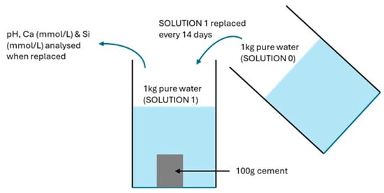 Haga et al. [1] and Hidalgo et al. [2] reported on the dissolution of cement into pore water and the measurement of the changing pH and ion concentrations. Cement paste dissolution models were developed by Atkinson et al. [3] and Berner [4] to model the long-term change in the composition of the leachate. Faucon et al. [5] concluded in their work that hardened cement paste was altered by ongoing leaching and dissolution, and changes in the solid hydrate phases occurred as a result. Others [6,7,8] summarised in their findings on the leaching of cement in deionised water that diffusion was the main transport mechanism of ions into the leachate. Haga et al. [1] found that research into the structural changes of hardened cement pastes due to dissolution had hardly been reported, and Liu et al. [9,10] reported on the dissolution kinetics of aluminosilicate precursors to provide a comparative framework for Si behaviour in leaching.