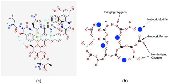 Structure of (a) vancomycin molecule and (b) bioactive glass structure [19].