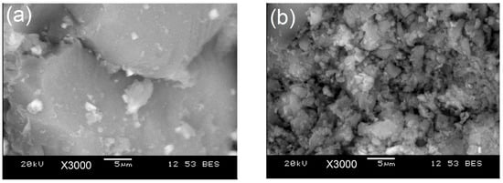 SEM images of BG-V before (a) the drug release study and after (b) the drug release study. Image (b) shows a more porous structure after drug release.