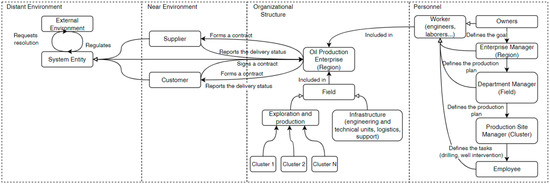 First, it is necessary to define the elements of the organizational structure of the oil production enterprise system (Figure 4).