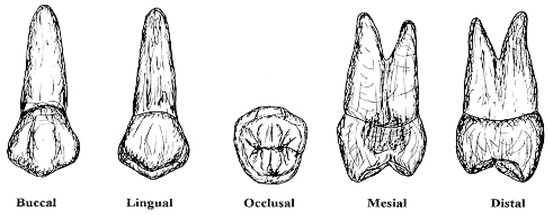 The mandibular second premolar is regarded as a composite system consisting of dentin, enamel, and restorative materials such as amalgam and composite resin. For the purpose of simplifying this analysis, this model assumes linear elastic behavior, isotropic material properties, and perfect adhesion at the interfaces between the constituent phases [