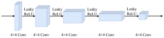 A basic convolutional discriminator was used to distinguish between real and generated images. Its network structure is shown in Figure 7. The discriminator receives the input image and performs feature extraction through a series of convolutional operations. Spectral normalization is applied to stabilize the training process. Using LeakyReLU as the activation function helps preserve more information and prevent gradient vanishing issues. The last layer maps the output to the range [0, 1], providing the probability that the input image is a real image.
