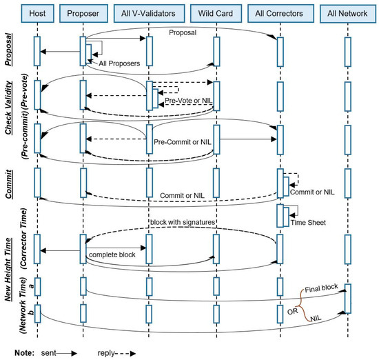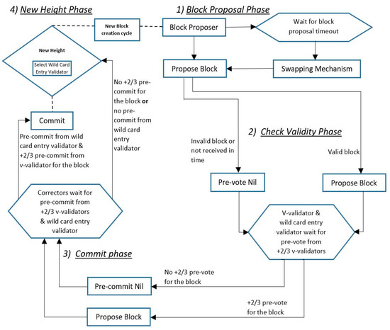 - Kim, S.; Lee, S.; Jeong, C.; Cho, S. Byzantine fault tolerance based multi-block consensus algorithm for throughput scalability. In Proceedings of the 2020 International Conference on Electronics, Information, and Communication (ICEIC), Barcelona, Spain, 19–22 January 2020; IEEE: New York, NY, USA, 2020; pp. 1–3. [Google Scholar]