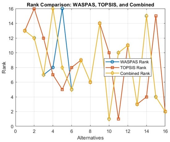 After obtaining rankings from both TOPSIS and WASPAS, they were combined to enhance robustness. We calculated the average ranking using a previous normalization of each score.