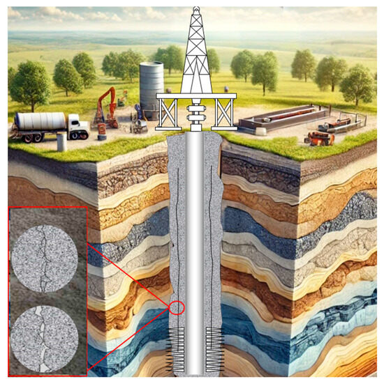 The cement in geothermal wells is exposed to high temperatures between 100 and 400 °C causing deterioration in the structure of the cement. Also, the cement suffers from volumetric shrinkage during pumping in the analysis, and hardening results in microcrack development. Conventional cement is susceptible to a reduction in sealing capacity due to its brittle nature and the weakening bonding with the casing. Leakage in wells typically arises from microcracks that develop and propagate due to factors such as cement job design, downhole stresses, chemical interactions with subsurface fluids, and temperature fluctuations [4,5,6,7]. These defects create undesirable pathways for subsurface fluid migration, often resulting in sustained casing pressure [8].