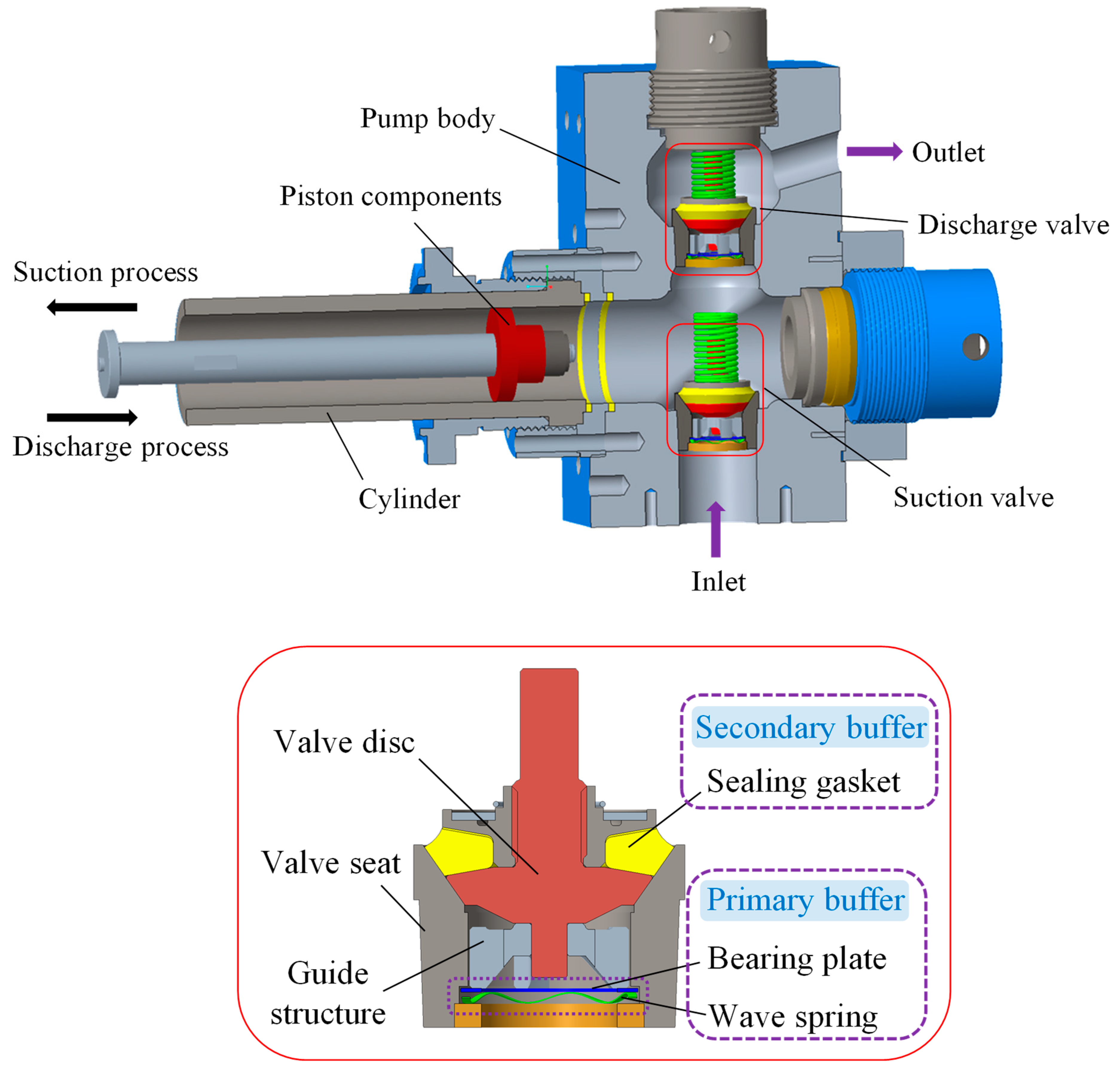 The drilling pump, a widely utilized positive displacement reciprocating pump in the petroleum industry, represents one of the most critical components of drilling operations. The efficiency and reliability of drilling pumps serve as vital guarantees for drilling operations. The motion hysteresis of pump valves exerts significant impacts on pump performance, while simultaneously causing valve failures due to impulsive loading. With rapid advancements in drilling technologies, the requirement for enhanced discharge pressure and flow capacity has intensified. Although increasing stroke frequency and stroke length are effective approaches to enhancing displacement and efficiency, such intensification accelerates valve failure mechanisms [1,2]. This technical contradiction necessitates urgent solutions for enhancing pumping efficiency while extending valve service life.