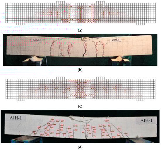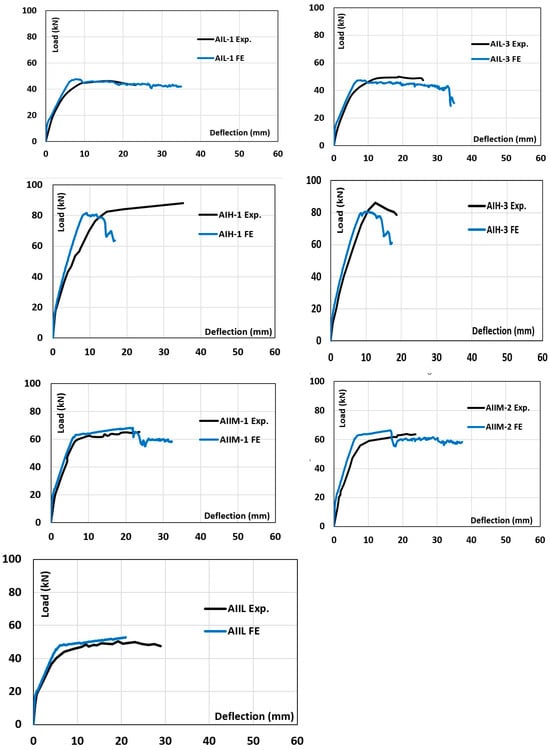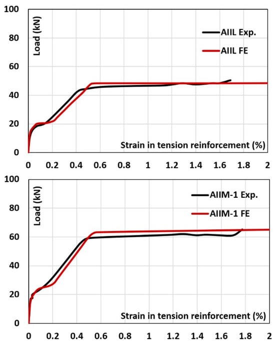 - The FE model based on the theoretical background of DSFM [33], which is a developed form of the MCFT [34], was built for AA RC beams. The FE model accurately reproduces the experimental results reported by Xing and Ozbulut [4] with a mean value of 1.00. The FE model can be utilised for the further design of AA RC deep beams.