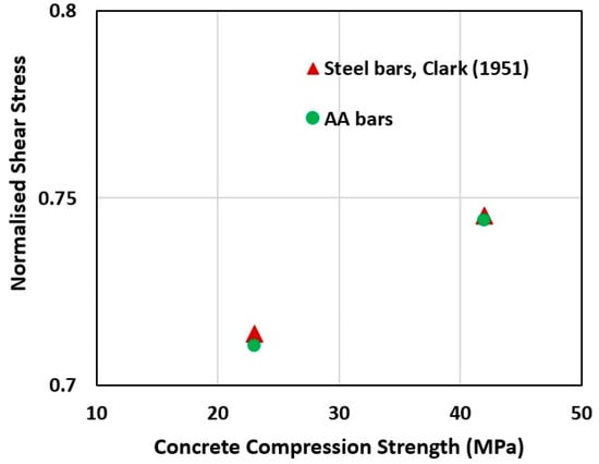 - Xing and Ozbulut’s [4] research examining AA RC deep beams was limited. Therefore, this study has provided insight into further investigations on AA RC beams. The main advantage of AA bars is corrosion resistance, and this property can also be improved by considering coating applications. For instance, AA bars offer an alternative to steel bars in situations where RC structures are exposed to a corrosive environment. Moreover, the behaviour of AA RC beams was found to be similar to that of RC beams reinforced with steel bars in the cases where the main parameters affected the structural behaviour, such as concrete strength, size, a/d ratio, and transverse reinforcement ratio. AA bars can also act as an alternative to FRP bars when ductility is needed. Furthermore, the initial cost of FRP bars can be high [4,13,14,15]. It should be noted that further experimental studies are required to understand the full-scale behaviour of AA RC in both deep and slender beams. The bond behaviour can also be improved by coating applications and examined by conducting bond-slip tests.