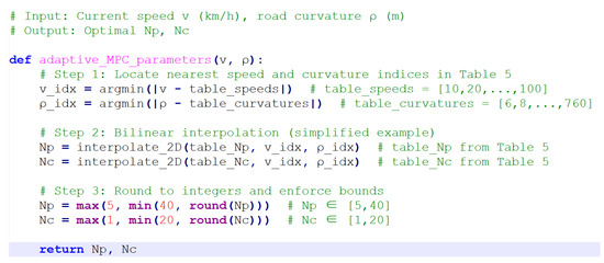 - Integration with V2X Technologies: Future research will focus on leveraging vehicle-to-everything (V2X) communication to enable dynamic curvature forecasting. By incorporating real-time data from connected vehicles and infrastructure, the controller can proactively adjust parameters, enhancing tracking accuracy and stability in anticipation of upcoming road conditions.
