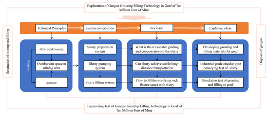 Based on the principle and system composition of gangue grouting filling technology in goafs, the reasonable grading and concentration of the slurry, whether the slurry can be stably transported over a long distance, and how the slurry fills the overlying rock fissure space are three key questions that need to be answered by this technology, as shown in Figure 2.