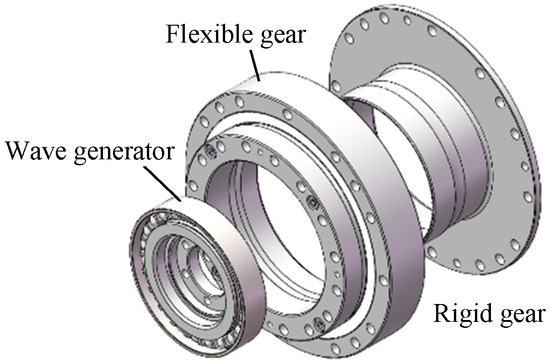As shown in Figure 2, the harmonic reducer is mainly composed of three components: wave generator, flexible gear, and rigid gear [13].