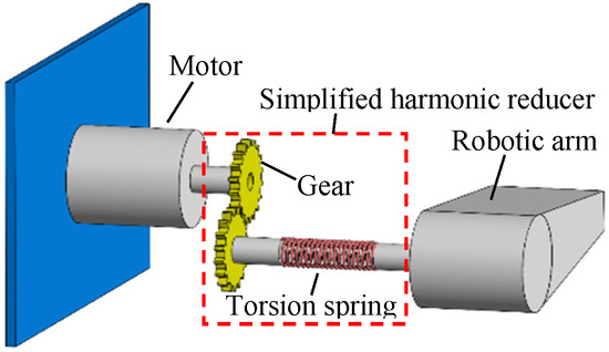 For the convenience of vibration analysis, a simplified model is adopted for the mechanical part of the joint module, as shown in Figure 4, whose forces are manifested as the meshing vibration and elastic deformation between gears. Then, the following equation is introduced.