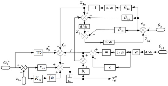 where is the angle error value, is the estimated value of , is the estimated value of , is the estimated value of the unknown disturbance term , and , , , and are the parameters of the ESO [25].
