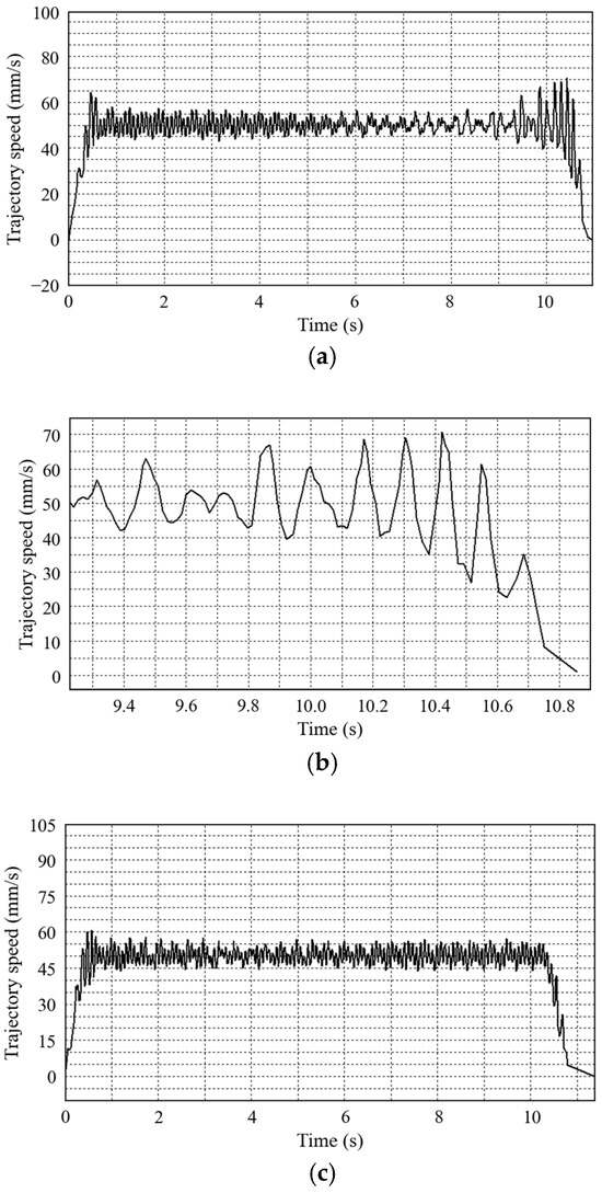 In order to investigate the influence of different trajectory velocities on vibration, two trajectory velocities were selected to compare the effects of adding the ADRC algorithm, namely 50 mm/s and 300 mm/s.