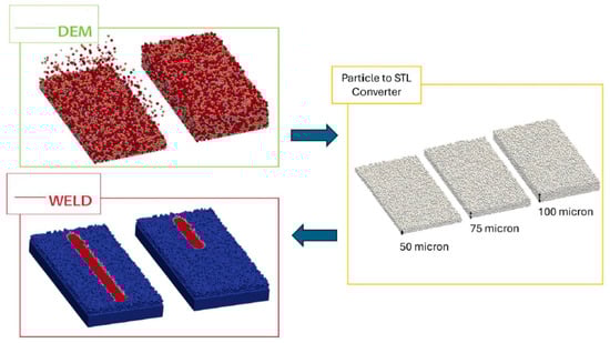 Additionally, for simulating the powder spreading process, the DEM was utilized. This allows for a more realistic examination of the interactions between powder particles and ensures a homogeneous particle packing. This approach enhances the accuracy and reliability of the simulations.