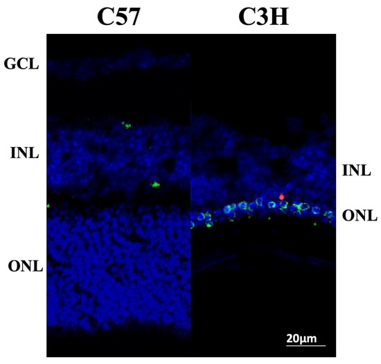 3.1. Photoreceptor Degeneration in the C3H Mice