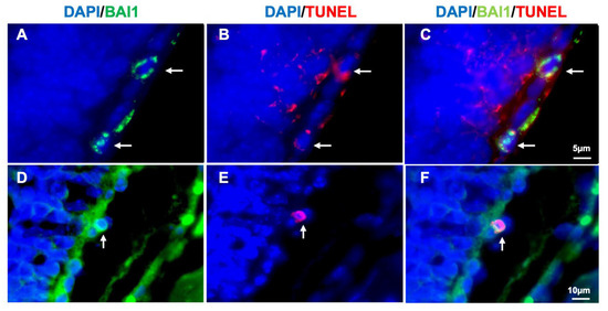 - Gerhart, J.; Bowers, J.; Gugerty, L.; Gerhart, C.; Martin, M.; Abdalla, F.; Bravo-Nuevo, A.; Sullivan, J.T.; Rimkunas, R.; Albertus, A.; et al. Brain-specific angiogenesis inhibitor 1 is expressed in the Myo/Nog cell lineage. PLoS ONE 2020, 15, e0234792. [Google Scholar] [CrossRef]