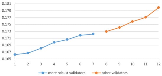 Due to the number of validation algorithms used in the comparison, from now on referred to as “validators”, there are validators with similar performance or efficiency, leading to close results at the end of a set of experiments made on a particular dataset. To make sure that there are statistically significant differences between the performance of the validators before ranking them, non-parametric paired tests have been carried out for comparison among all of them.