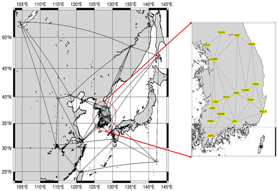 To reinforce the domestic network, seventeen continuously operating reference stations (CORS) within South Korea were selected based on criteria from ICSM (2017) [50] and NGS (2011) [51]: