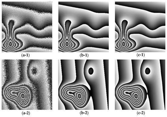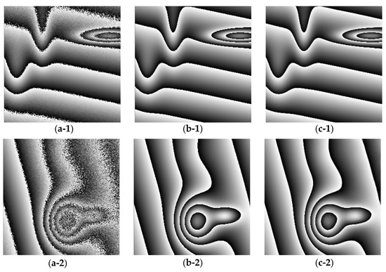 - Aebischer, A.H.; Waldner, S. A Simple and Effective Method for Filtering Speckle-Interferometric Phase Fringe Patterns. Opt. Commun. 1999, 162, 205–210. [Google Scholar] [CrossRef]