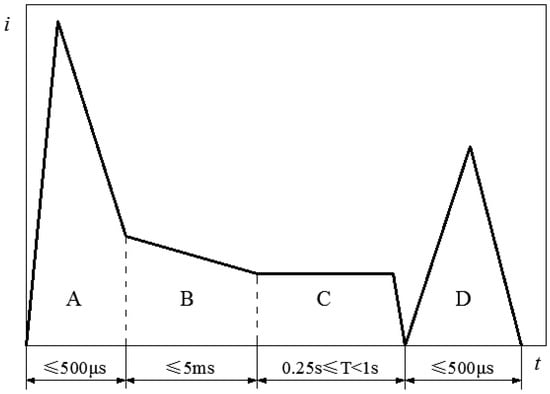 The Society of Automotive Engineers (SAE) has established a lightning current waveform standard that offers crucial guidance for simulating real-world lightning environments in laboratory settings. This standard delineates lightning currents into four distinct components—A, B, C, and D—as illustrated in Figure 2 [].