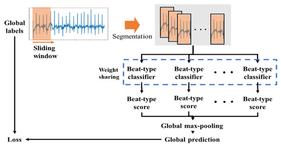 - Tong, Y.; Sun, Y.; Zhou, P.; Shen, Y.; Jiang, H.; Sha, X.; Chang, S. Locating abnormal heartbeats in ECG segments based on deep weakly supervised learning. Biomed. Signal Process. Control 2021, 68, 102674. [Google Scholar] [CrossRef]