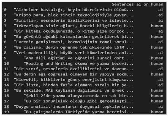 The dataset was created by combining sentences generated by AI with human-generated sentences. AI-generated sentences were produced using OpenAI’s ChatGPT-4o [25], Gemini–2.0 Flash [26], and standard Microsoft 365 Copilot Chat (Free version) [27], spanning various academic topics. The dataset used in this study consisted of 4000 statements deliberately curated to represent a broad spectrum of academic disciplines, including engineering, medicine, social sciences, and natural sciences. This approach ensured a comprehensive and diverse dataset, reflecting the varied linguistic structures and domain-specific language encountered in scholarly writing. The AI-generated content was produced using three leading language models: OpenAI’s ChatGPT, Google’s Gemini, and GitHub’s Copilot. The prompts for these models were carefully crafted to elicit high-quality, scholarly responses across multiple subjects, ensuring that the generated text mirrors the complexity and depth expected in academic discourse. This rigorous design process aimed to produce contextually rich samples that accurately reflect real-world academic writing.