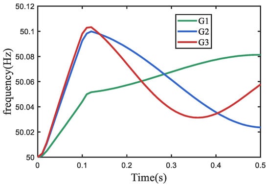 The frequency dynamic characteristics of the three generators in the IEEE 9-bus system.