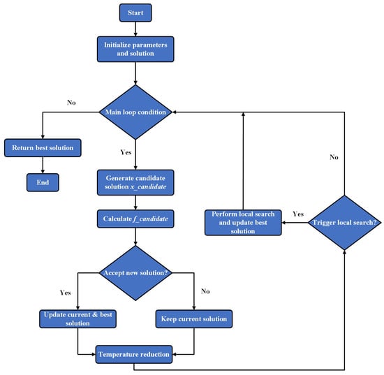 A flowchart of the dual simulated annealing Algorithm 1 is shown in Figure 1: