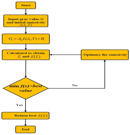 In order to have a clearer understanding of the emissivity optimization process and to obtain the true temperature, this paper shows the process of optimizing the emissivity and solving the temperature in Figure 8.