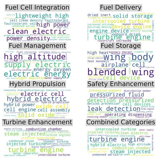 This work is limited in scope to the claims section of USPTO-issued patents, enabling deep insight into protected innovations but not capturing all the global developments or unfiled research. Future work could expand coverage to integrate the academic and industrial literature. Nonetheless, the claims-based approach of this study establishes a solid methodological foundation for the ongoing tracking of hydrogen aviation innovations.