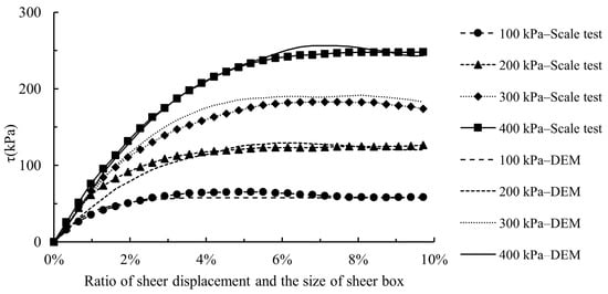 | Tangential strength of parallel bond (Pa) | − | − | 1.0 × 10100 |