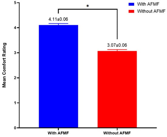 Subjective Ratings of Comfort Level (* p < 0.05; Error Bars Indicate Standard Errors [SE]).
