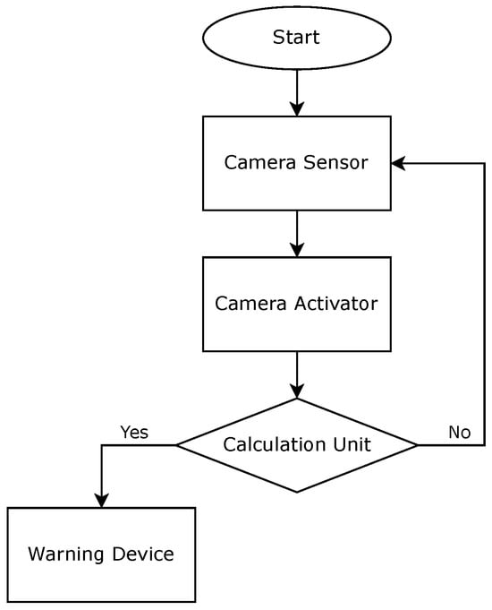 The architecture described in this paper is based on the research conducted by Su et al. [7] on an image-based driver monitoring system, which is designed to enhance the safety and reliability of autonomous driving by continuously assessing the driver’s condition and readiness to take control of the vehicle [7]. An overview of the system architecture can be seen in Figure 4. The system integrates multiple components, including sensing modules, a robust computing platform, and an alert mechanism, to ensure that the driver remains alert and available according to established safety standards, such as UN R157 [7]. The architecture leverages advanced deep learning algorithms running on an embedded platform to perform real-time analysis of driver behaviors, such as head posture, eye state, and gaze direction. This integrated approach enables the system to detect and respond to signs of driver inattention or fatigue, providing timely warnings to prevent accidents.