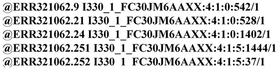 The IDs from a FASTQ file are of a identical format []. Each ID is divided into several areas by special characters. The areas contain different information about this read. The differences between these IDs are merely a few symbols. Therefore, the IDs from the same FASTQ file show high structural similarity.