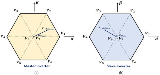 Vectorial diagram of the voltage space of each inverter: (a) Master inverter. (b) Slave inverter.
