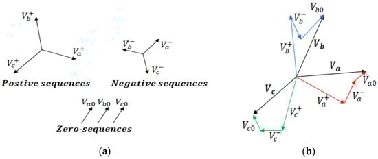 Assuming that the three-phase loads are symmetrical, the sum of the load phase voltages must be zero, as expressed in Equation (3).