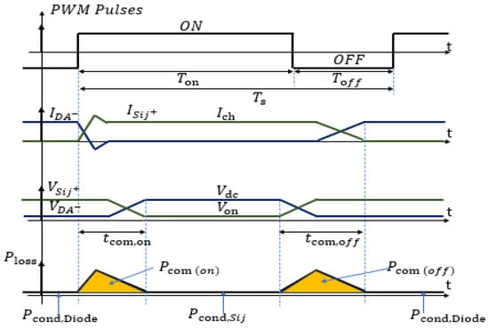 where , is the DC bus voltage, and and represent the switching states of inverters i and j, respectively.