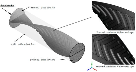 The boundary conditions of a tube fitted with continuous V-rib twisted tape.